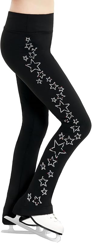 Gogokids Girls Ice Skating Leggings, Kids Fleece Thermal Black Dancing Trousers