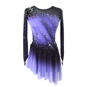 This is a LIUHUO figure - skating dress. It has a gradient color from purple to pink, decorated with crystals, long sleeves, and is suitable for figure - skating performances, competitions, or shows. It can be a custom - made outfit for both children and adult women.