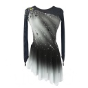 This is a LIUHUO figure - skating dress. It has a gradient color from dark to light, decorated with sparkling elements, long sleeves, and is suitable for figure - skating performances.
