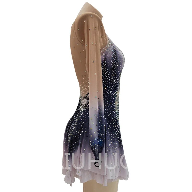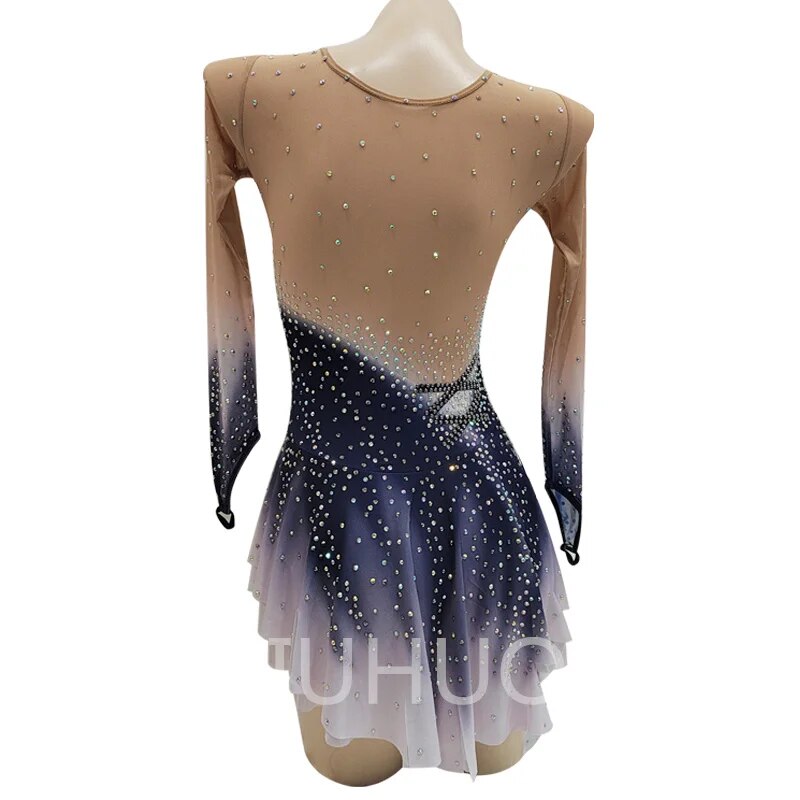 LIUHUO Grey gradient Figure Skating Dress Girls Women Practice Sleeveless Ice Skating Skirt Performance Wear