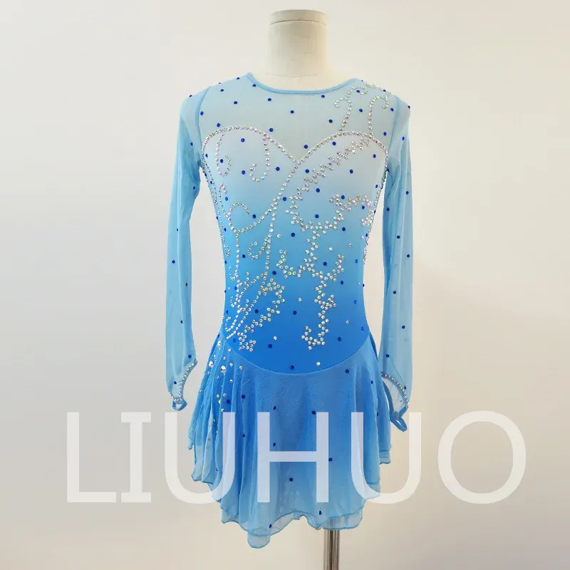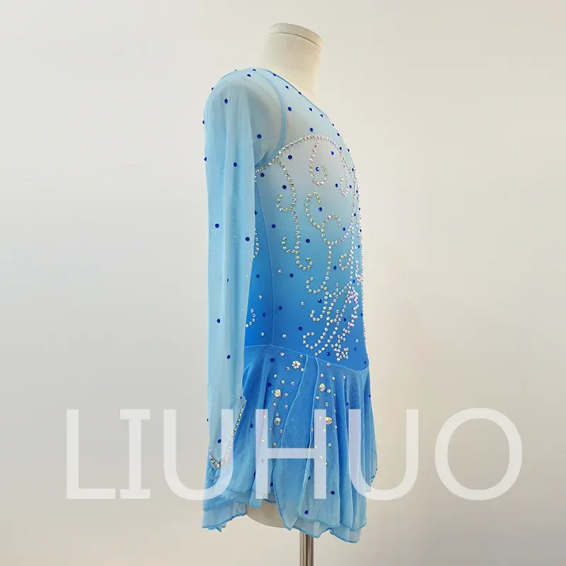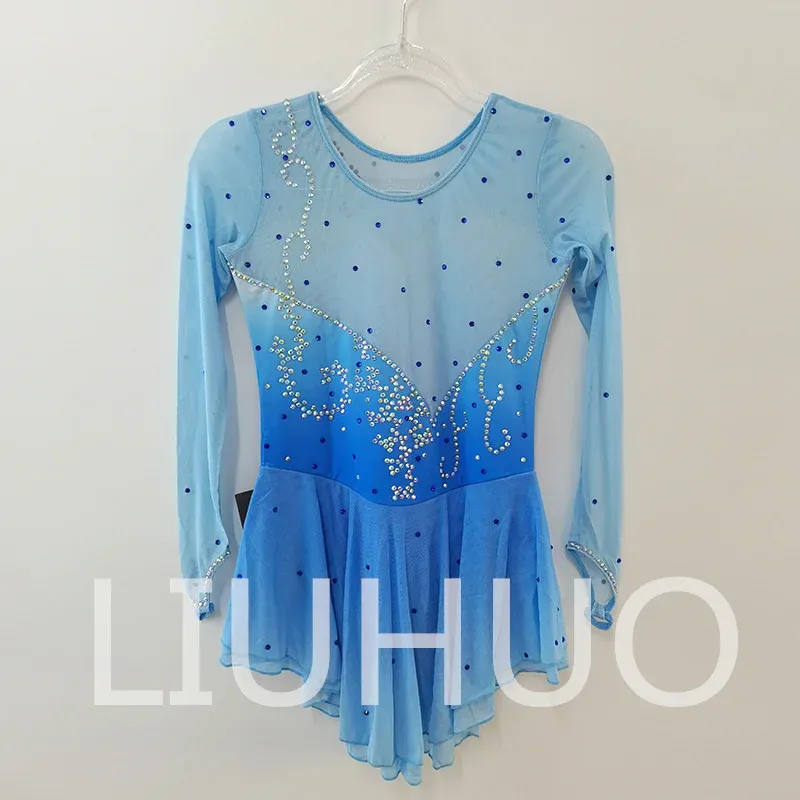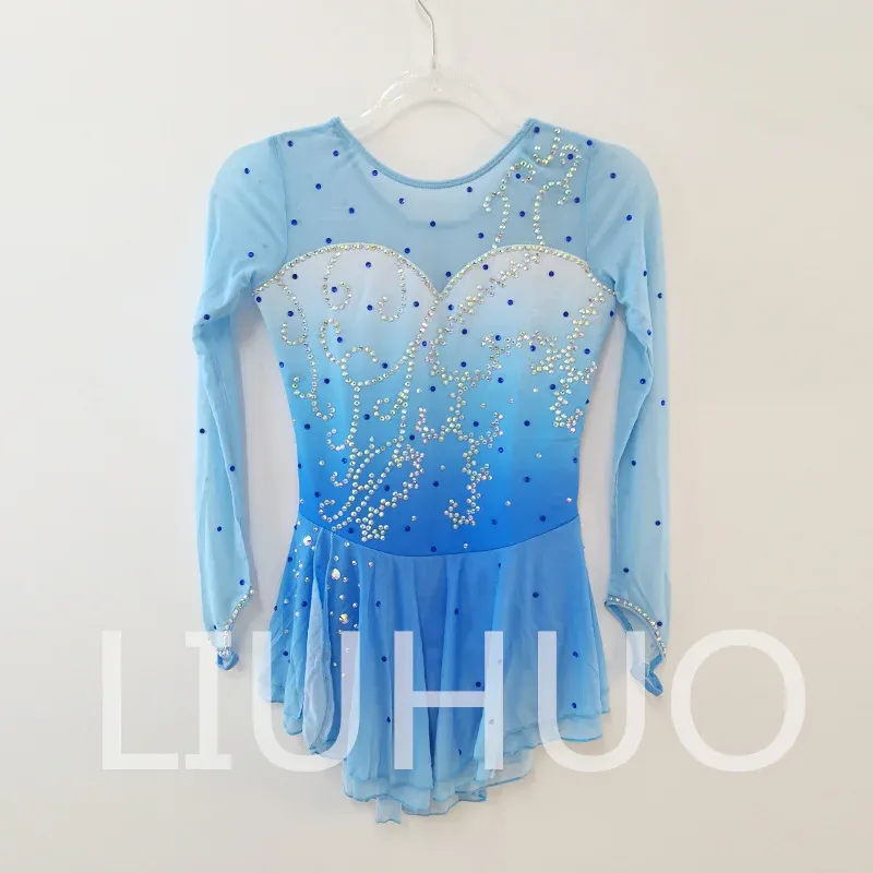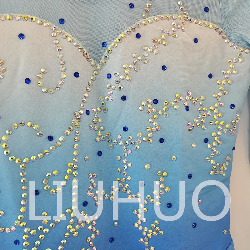 ❤ Features: This LIUHUO figure - skating dress is fresh and eye - catching. It mainly features a light blue color with a gradient effect, resembling a clear blue sky. The long sleeves are made of sheer fabric, creating a hazy and light - weight feel that adds a sense of elegance and fluidity.