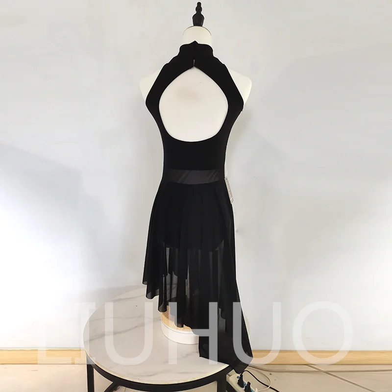LIUHUO Ice Figure Skating Dress Girls Women Teens Stretchy Spandex Competition Wholesale Black