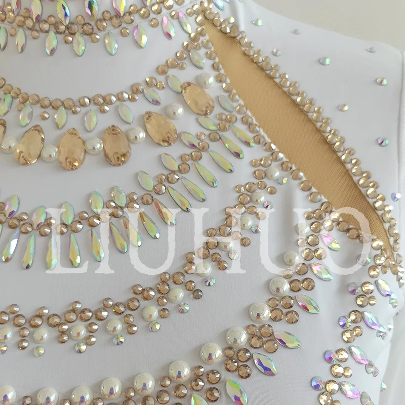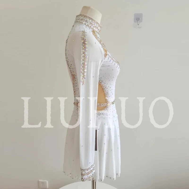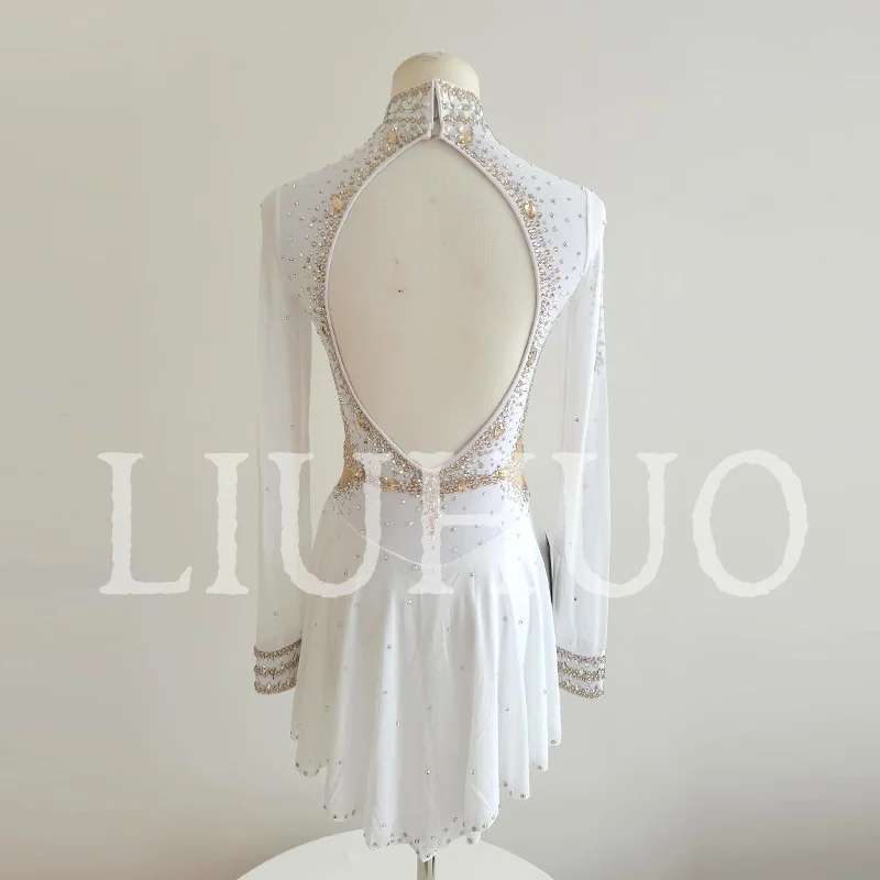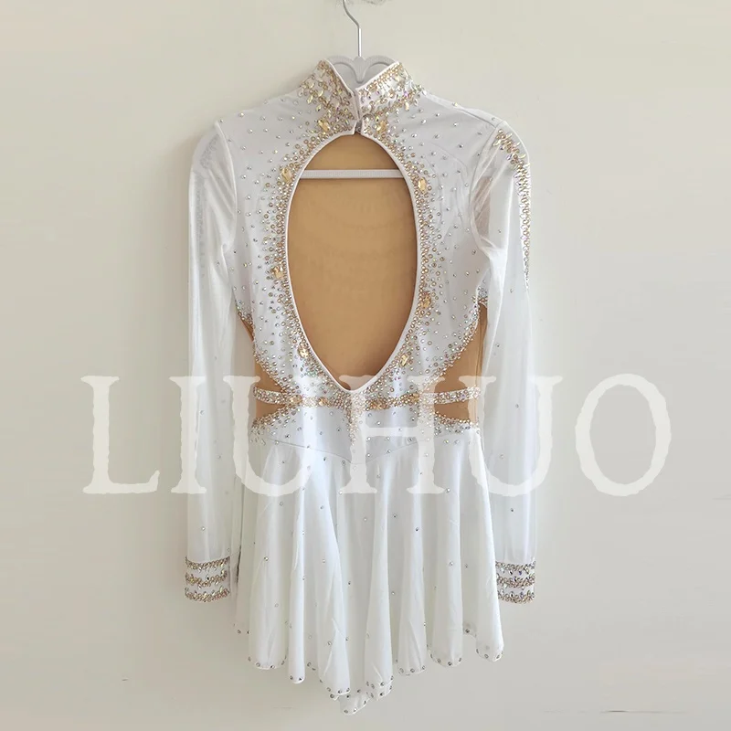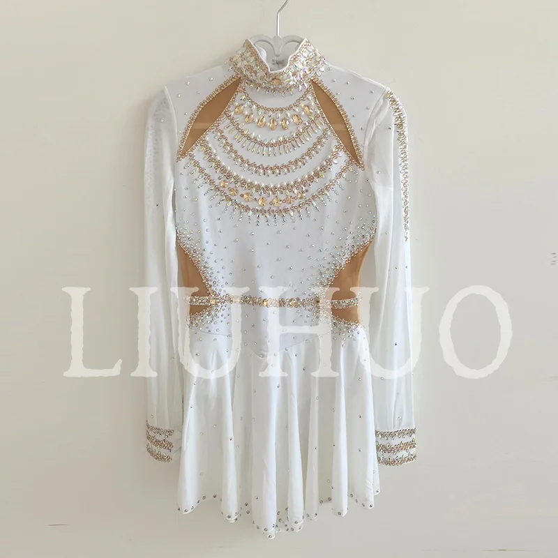 LIUHUO Ice Figure Skating Dress Girls Women Teens Stretchy Spandex White Competition Wholesale