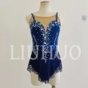❤ Features: This is a customizable figure - skating dress from the LIUHUO brand. It features a deep blue color with a stylish design that includes a sheer, nude - colored mesh on the upper chest area. The dress is lavishly adorned with an abundance of sparkling rhinestones in various shapes and colors, creating a dazzling and luxurious look. You can customize details to make it perfect for your figure - skating performances, adding unique elegance and glamour.