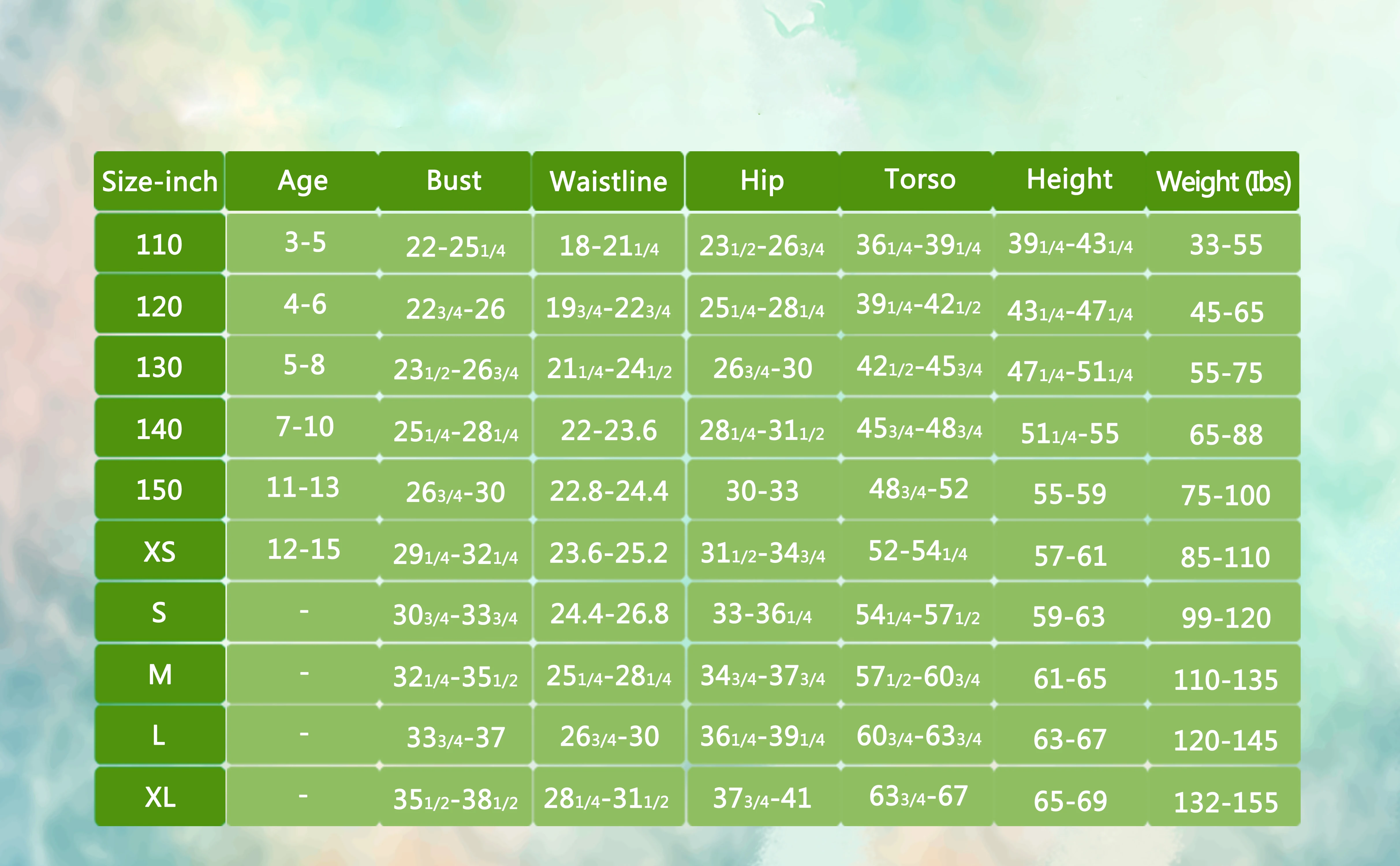 The suggested age and height is just for your reference. If your measurement is floating between two sizes, advise choosing the larger size. (Measurements shown in the size chart refer to item measurements, not body.)