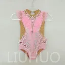 ❤ Features: These are LIUHUO rhythmic gymnastics leotards. They have a charming design with pink as the main color, adorned with delicate lace, sparkling rhinestones, and pearl - like embellishments. The leotards feature a combination of sheer and solid fabric, creating an elegant look. Besides pink, green, blue, and purple color options are also available.