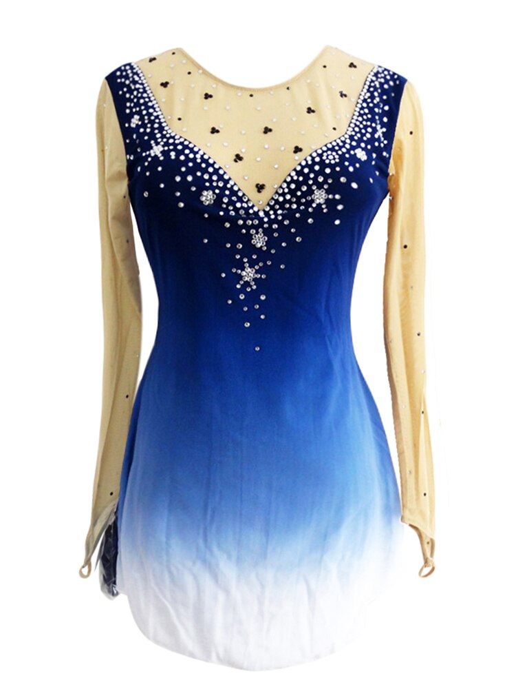 LIUHUO Custom Figure Skating Dress Girls Blue Gradient flatback rhinestones Quality Crystals Long Sleeves for Ice Skating dress