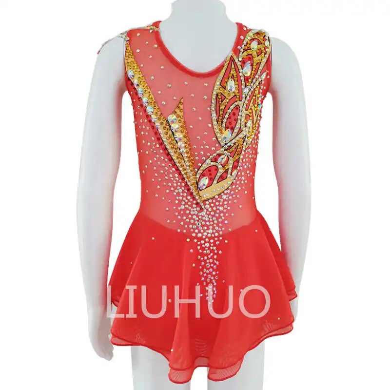 LIUHUO Figure Skating Costume Red Mesh Splicing Two-Color Girls Competition Performance Costume